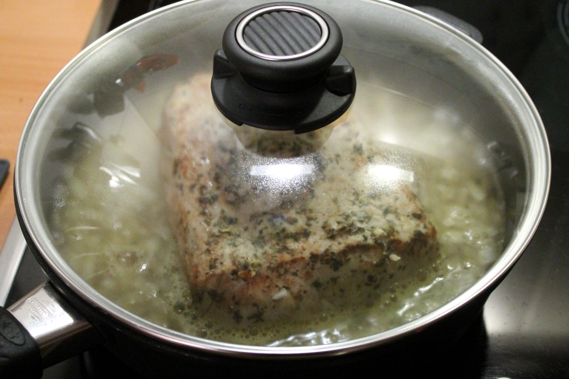 Wir hatten ja beschrieben, wie hervorragend der Kräuterschweinebraten mit Zwiebelsoße in der Gastrolux Pfanne (www.gastrolux-shop.de) wurde. Da wir für zwei Tage gekocht hatten, mussten wir am nächsten Tag überlegen, wie wir den Braten wieder warm bekommen. Schweinebraten in der Mikrowelle aufwärmen geht wirklich gar nicht und beim Aufwärmen im Backofen besteht die Gefahr, dass er sehr trocken wird.Also haben wir die Soße und den Braten wieder in die Gastrolux-Pfanne gegeben, Deckel drauf, einmal kurz aufkochen lassen und dann bei schwacher Temperatur ca. 20 Minuten köcheln lassen. Das Ergebnis: Der Braten war durch und durch warm und wurde nicht trocken! Es war einfach lecker!