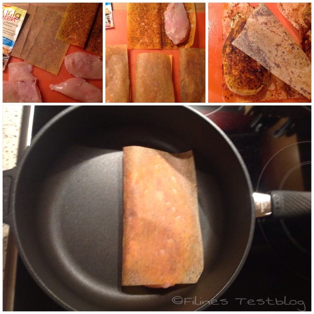 Vor ein paar Tagen habe ich euch mein erstes Gericht Hühnchenfleisch in Würzpapiergezeigt, dass ich mit meiner neuen Pfanne von der