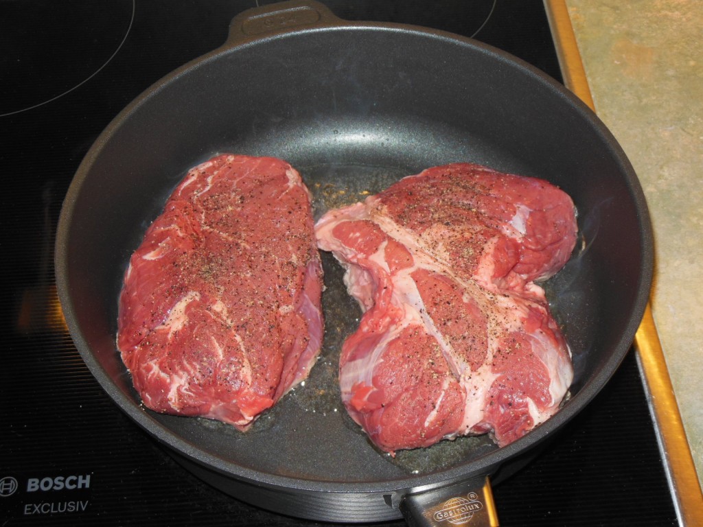Rinderschmorbraten im Ofen mal wieder was im Herd, Rinderschmorbraten Burgunder Art, Pfanne hat sich wieder bewährt, beim Anbraten nix angelegt, […]