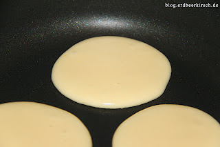 Als nächstes die Gastrolux Pfanne bei mittlerer Hitze erwärmen. Mit einem Küchtentuch Öl in der Pfanne verteilen und etwa zwei Esslöffel des Teigs in die Pfanne gleiten lassen (es sollte ein kleiner Kreis entstehen). Die Hitze auf klein stellen. Wenden, sobald sich die ersten kleinen Bläschen auf der Oberfläche bilden.