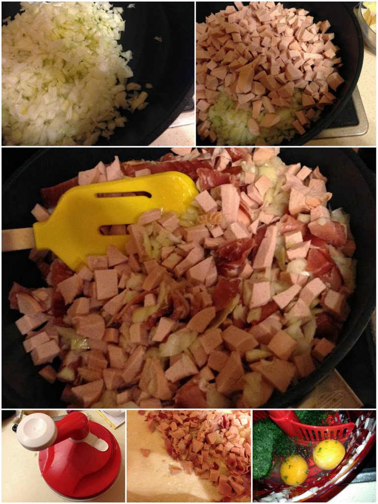 Gastrolux-Pfanne leicht anbraten. Klappte wieder wunderbar, durch den hohen Rand meiner Pfanne kann man auch solche Mengen ohne Probleme mit einmal verarbeiten.