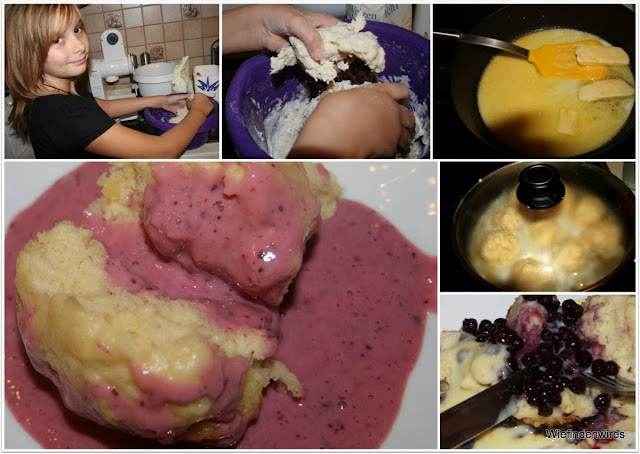 Als Beilage gab es einmal gemischte Beeren in Buttermilch gemixt (dafür hab ich wieder unseren SoupMaker benutzt) und Heidelbeeren aus dem Glas mit Vanillesoße.