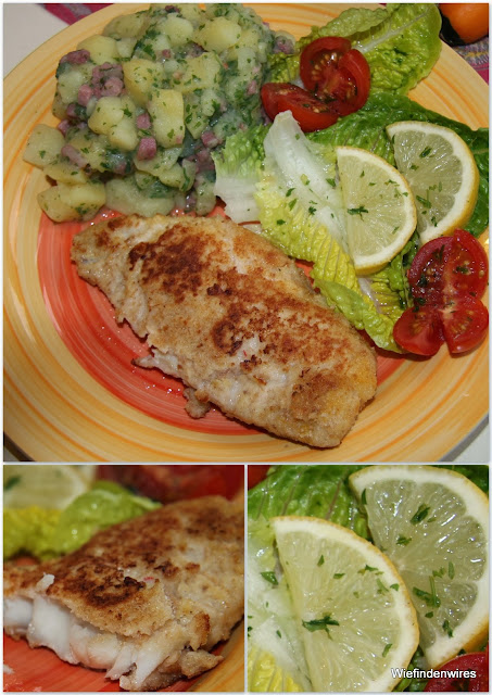 Heute gab es Fisch. Ich hasse es, wenn die Panade beim Braten plötzlich an der Pfanne hängt – aber nun, mit der neuen Pfanne von Gastrolux ist es kein Problem mehr.