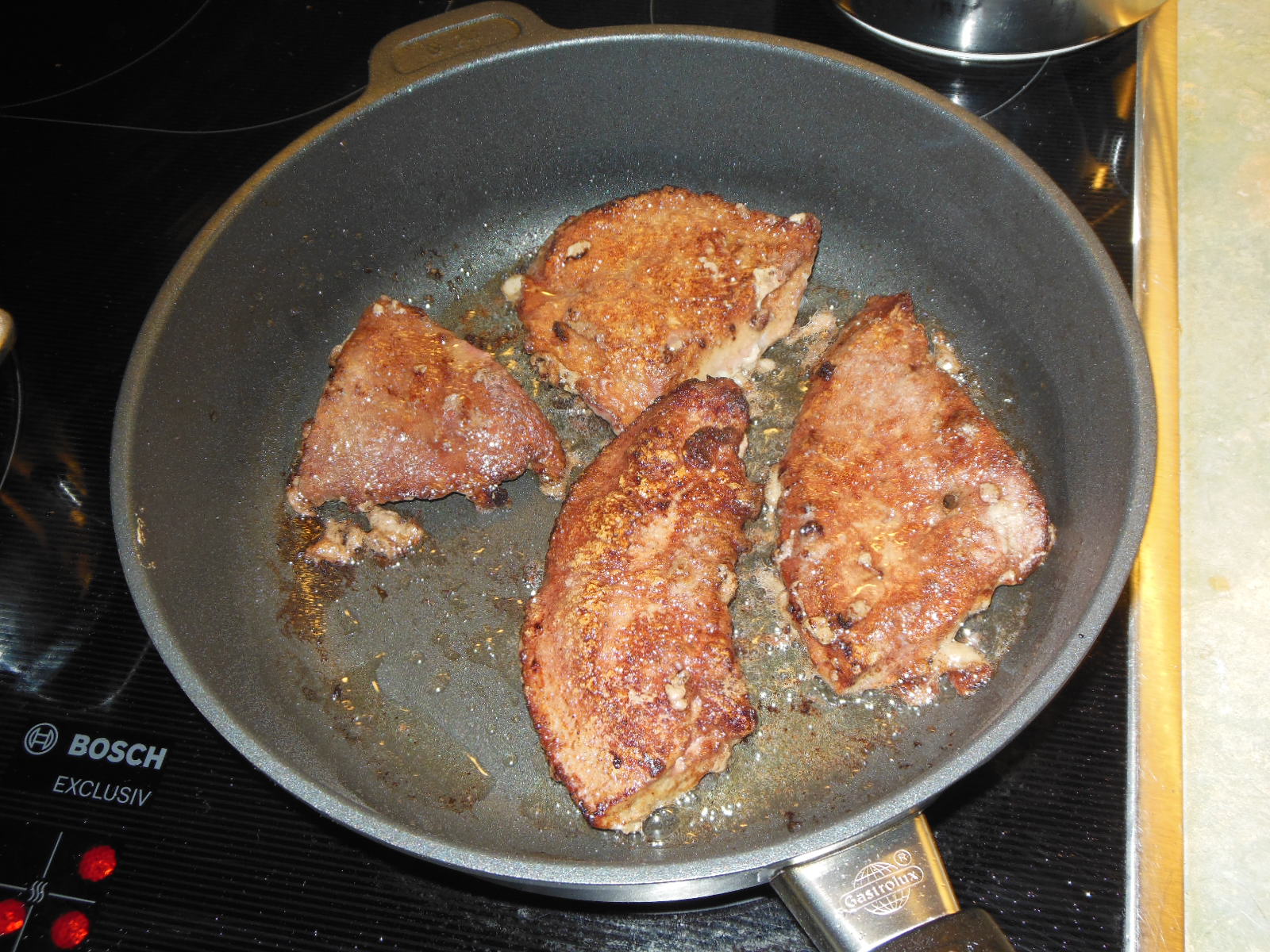 Pfanne hat sich wieder bewährt, einfache Reinigung, Leber war butterweich und saftig, siehe Bilder und Video, Pfannen gibts bei   http://www.gastrolux-shop.de/