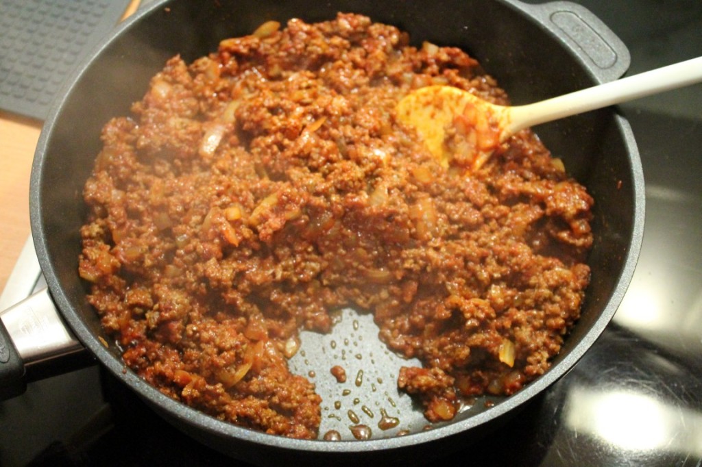 Zutaten für 4 bis 6 Personen:600 g Rinderhack 1 Dose Mais 1 große Gemüsezwiebel 1 Tube Tomatenmark 1 Tose kleingehackte