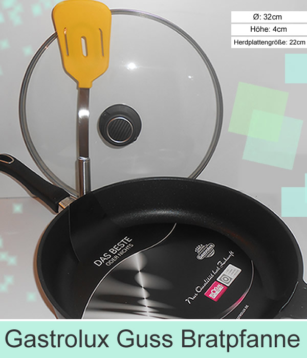 Rouladen, Gulasch oder Pfannkuchen.Genauso toll wie das braten mit der Gastrolux, ist das einfache reinigen der Pfanne.Besonders positiv ist das fettarme und Energie schonende braten und schmoren. Ich kann Euch die Pfanne von Gastrolux nur weiter empfehlen, denn da macht das kochen wirklich Spaß.Ich bin total happy und zufrieden, eine Bereicherung für meine Küche.An dieser Stelle vielen dank noch an Gastrolux, die mir diese Freude am kochen ermöglicht hat.Guten Appetit wünscht Euch Eure Margit.
