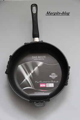 Pfannenwender, Informationsbroschüren und eine paar Kochrezepten bei mir an.Die Pfanne ist aus hochwertigen Aluguss.