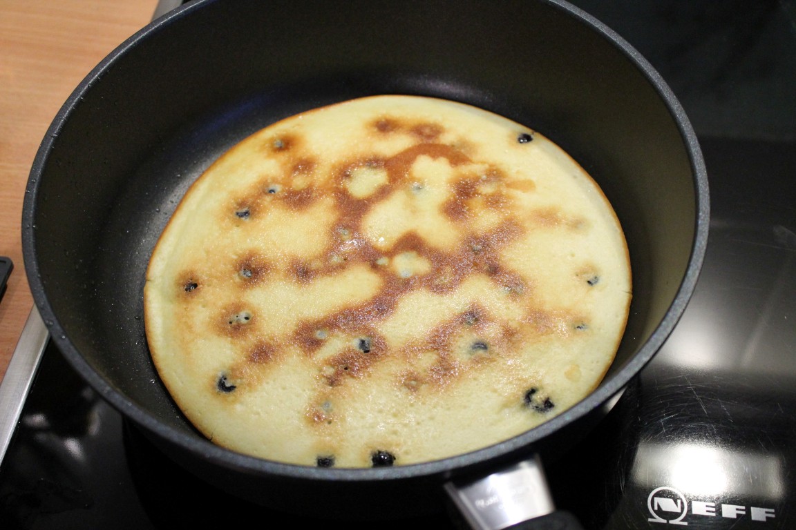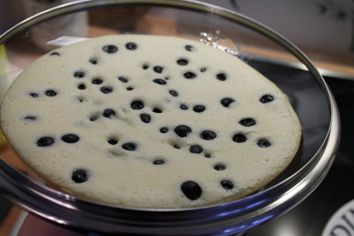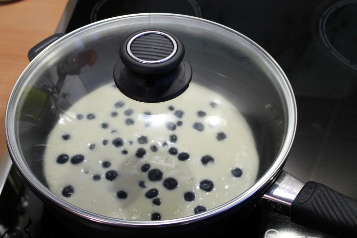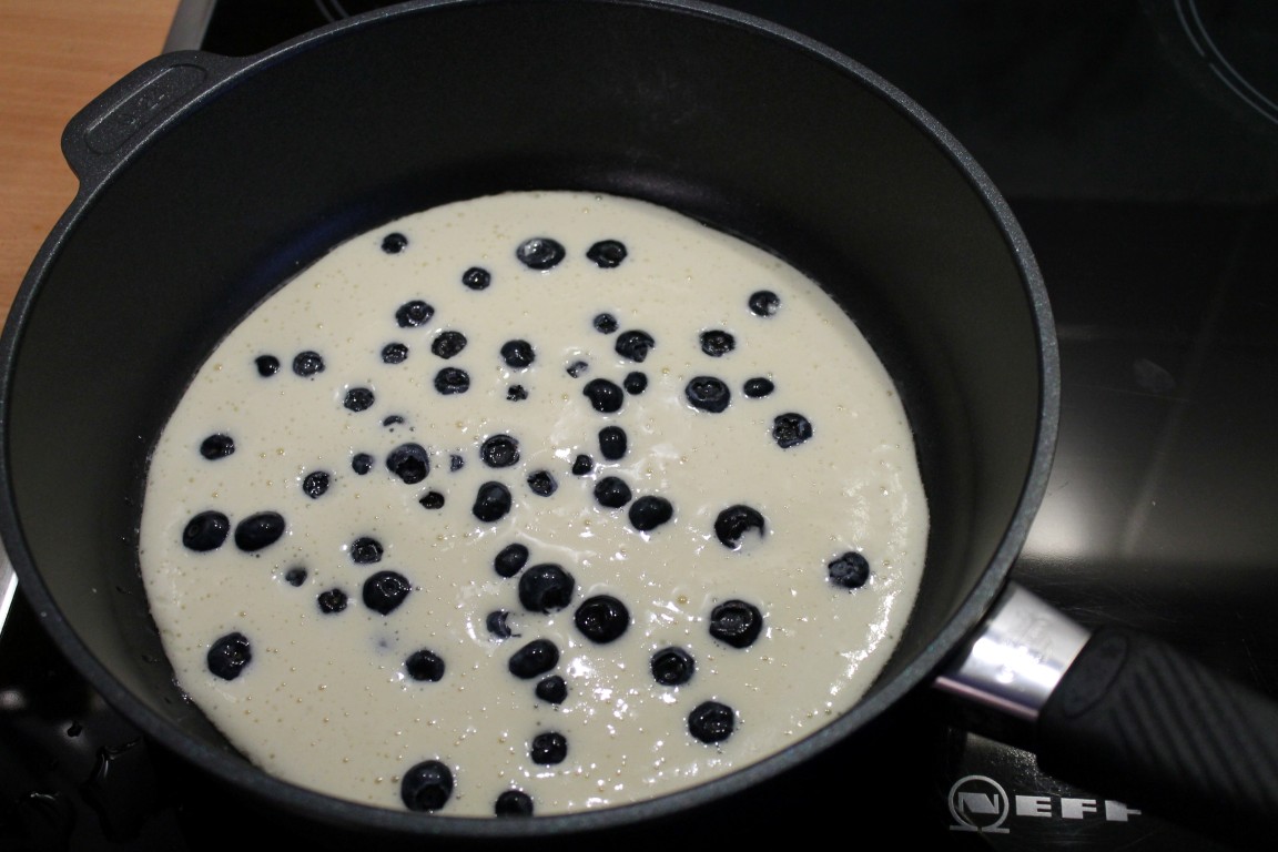 Ich habe gestern zum ersten Mal eine „süße Schweinerei“ in der Gastrolux-Pfanne (www.gastrolux-shop.de) gemacht, und zwar Heidelbeer-Pfannkuchen. Und was soll ich sagen… sie wurden super! Nachdem der Pfannkuchen angestockt und die Unterseite gold-braun gebacken war, ließ ich ihn einfach in den Deckel gleiten. Dann den Deckel auf die Pfanne, so dass der Pfannkuchen mir der ungebackenen Seite in die Pfanne zurückfiel. So einfach habe ich noch nie Pfannkuchen gemacht :-).