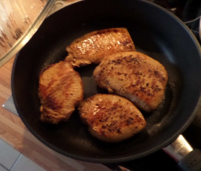 Ich arbeite aber gern mit der Restwärme der Pfanne und weiche Sie damit noch einmal ein,